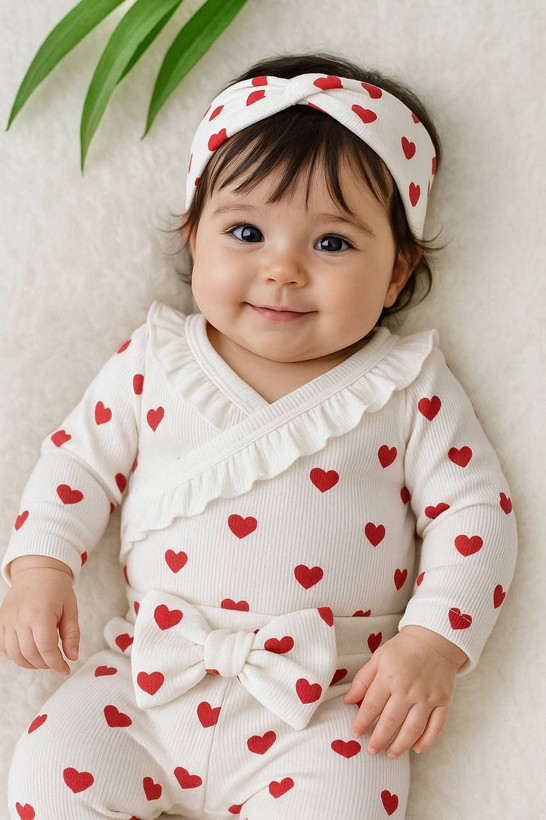 بادی شلوار و هد قلبی نوزادی از ۳ماه تا ۲سال