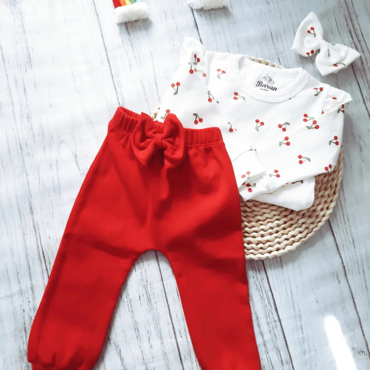 ست آلبالو شلوار و بادی و هد کبریتی