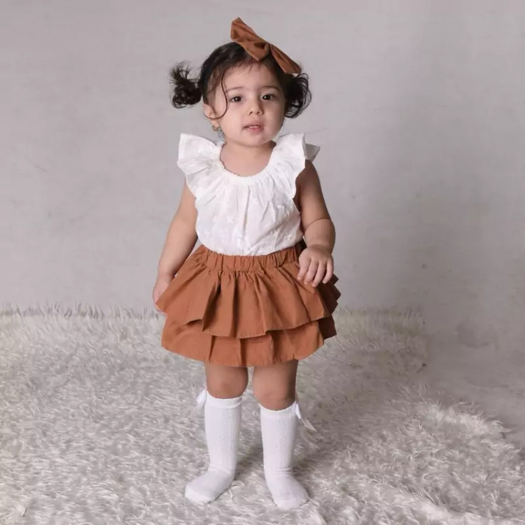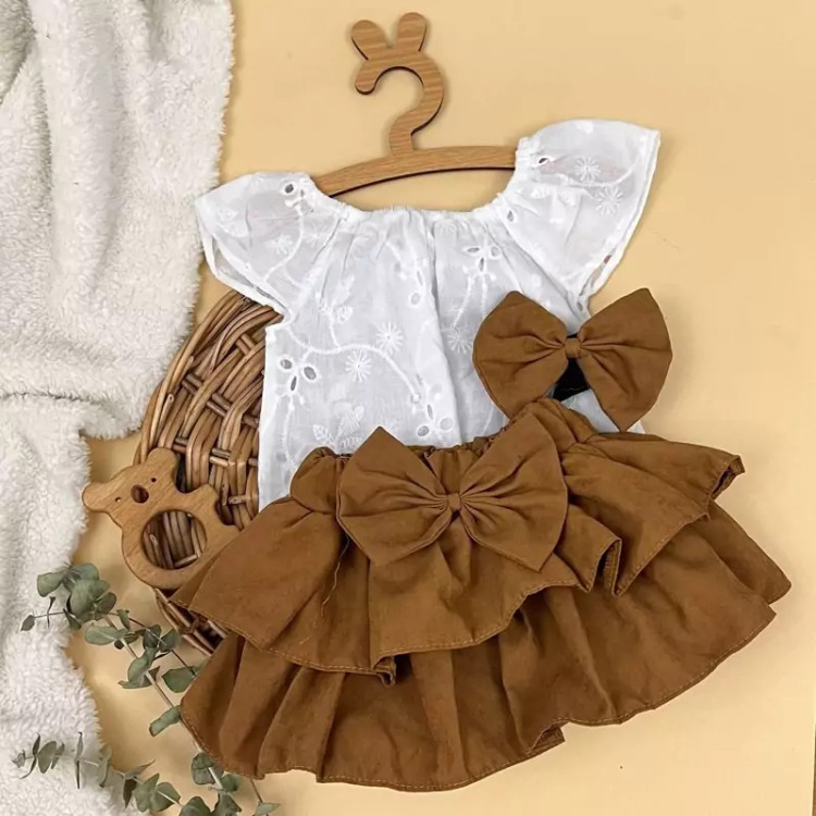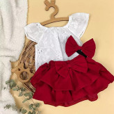 تاپ خامه دوزی و دامن شورتی دخترانه