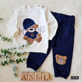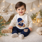 بلوز شلوار تدی چوبکاری بچگانه سورمه ای