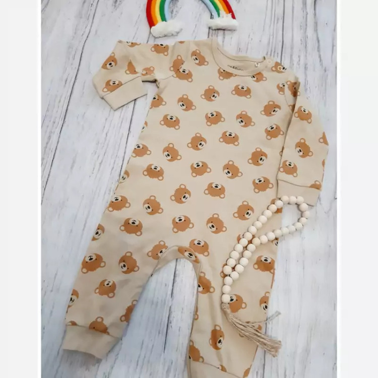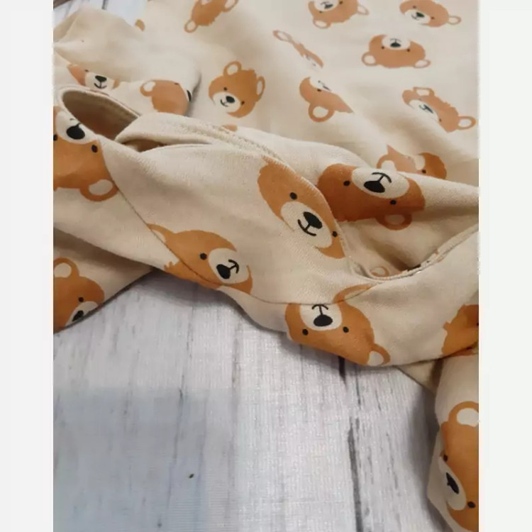 از برمد فاکس اند بانی دارای دکمه در سرشانه و فاق تک سایز سایز 6تا9ماه قدفاق 42 قد 58 آستین27 پهنا 30