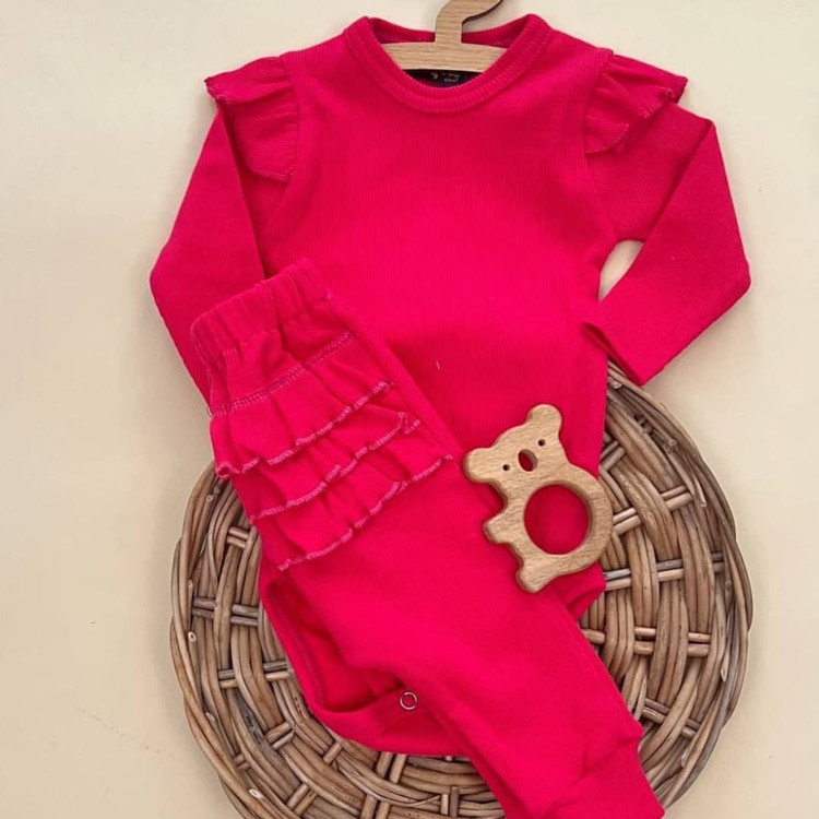 بادی شلوار چیندار و هد رنگ سرخابی جنس کبریتی