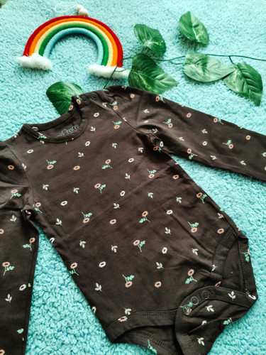 بادی آستین بلند نوزادی برند سوکیوت گلدار قهوه ای